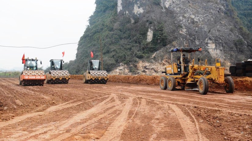 Nhà thầu thi công một dự án thành phần cao tốc Bắc-Nam giai đoạn 2017-2020. (Ảnh: Việt Hùng/Vietnam+)