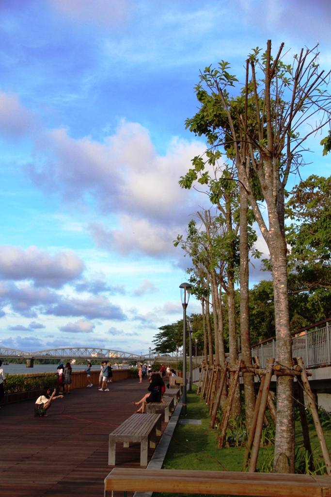 Bà Dương Thu Hương, trú tại phường Tây Lộc xem trên trang facebook cá nhân của một người bạn ở TP. Hồ Chí Minh thấy ảnh cầu gỗ lim quá đẹp nên rủ nhóm bạn cùng khóa thời đại học sang chụp hình. "Thật tự hào khi Huế có một con đường dạo bộ tuyệt đẹp trên sông", bà nói!