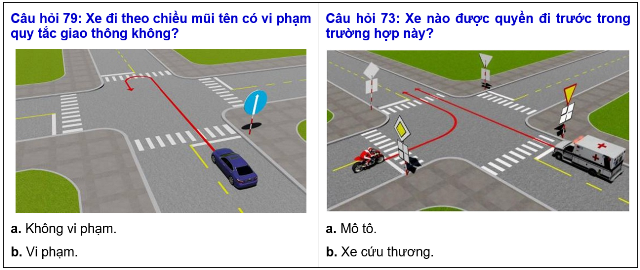 Hay cùng là về sa hình, tình huống giao thông ở câu hỏi 73 rõ ràng là phức tạp hơn hẳn ở câu hỏi 79. Nên khi tổ hợp vào đề sát hạch, có thể xảy ra tình huống cùng là một người nếu gặp khó thì trượt, còn gặp dễ hơn thì đạt. Khá giống với “học tài, thi phận” vậy.
