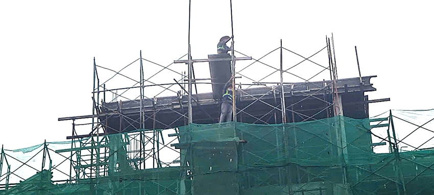| Công nhân làm việc tại gói thầu số 33 luôn phải di chuyển trên cao, rất nguy hiểm nếu không đảm bảo an toàn lao động |