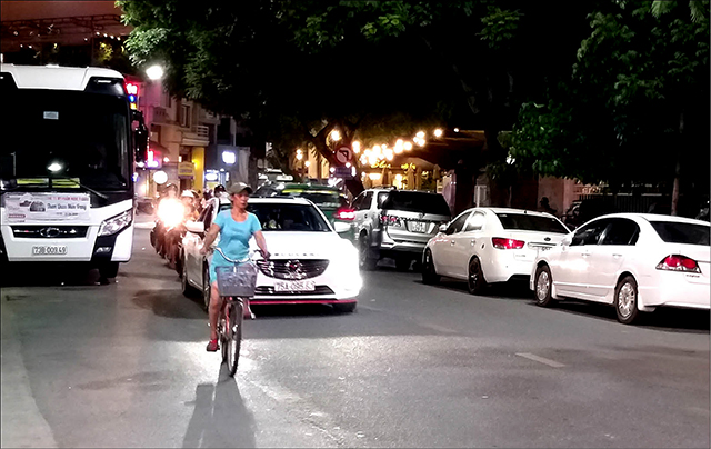 “Mỗi tối khi phố đi bộ vào hoạt động, tại các điểm giao nhau của những tuyến đường như: Chu Văn An - Phạm Ngũ Lão - Võ Thị Sáu... người và xe cộ chen lấn nhau rất mất trật tự. Đã từng xảy ra một số vụ va chạm giao thông giữa các phương tiện, do tuyến đường vừa chật hẹp vừa đông người và các phương tiện lưu thông đậu đỗ tùy tiện”, bà Nguyễn Thị Phúc, sống gần khu phố đi bộ phàn nàn.