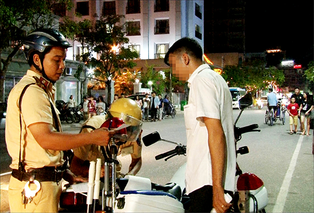 CSGT Công an TP. Huế xử lý chủ phương tiện dừng, đỗ không đúng quy định xung quanh tuyến phố đi bộ