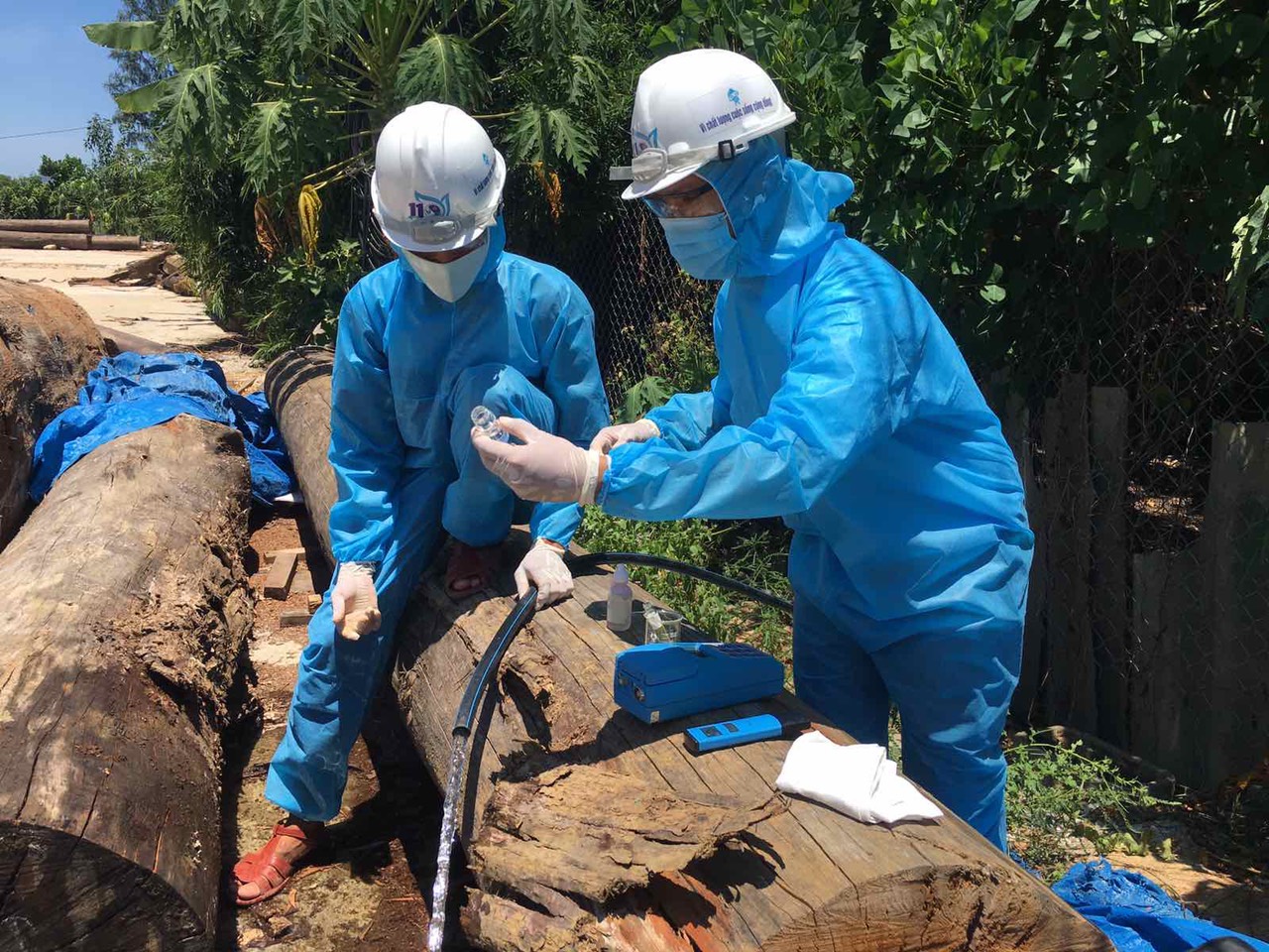 Cán bộ kiểm tra chất lượng nước tại xã Lộc Thủy