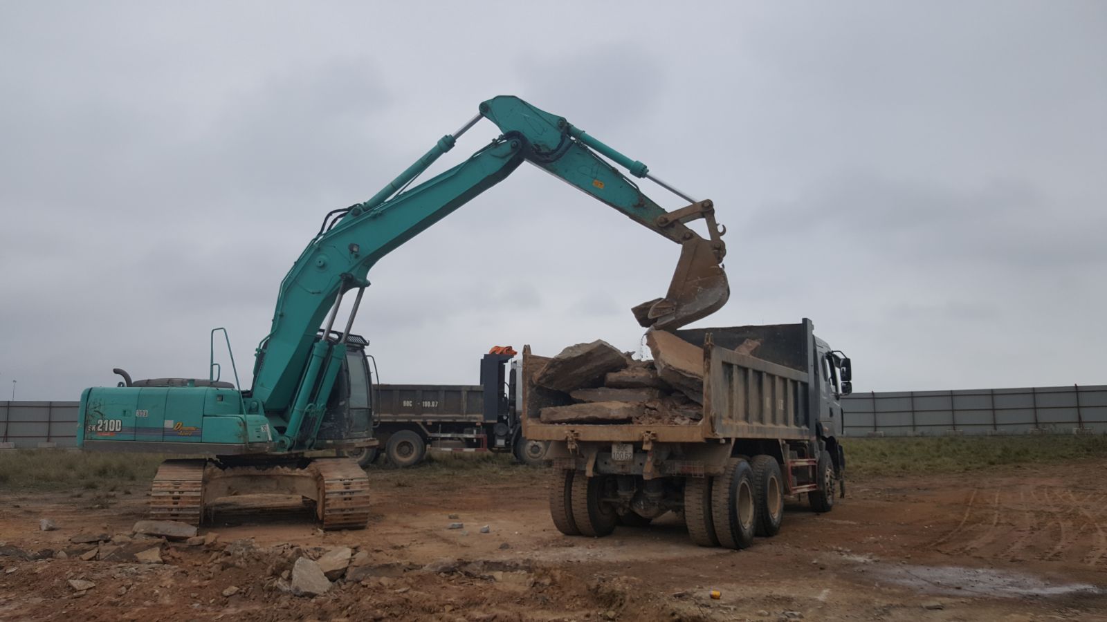 Nhiều phương tiện máy móc tập trung thi công khi thời tiết khô ráo