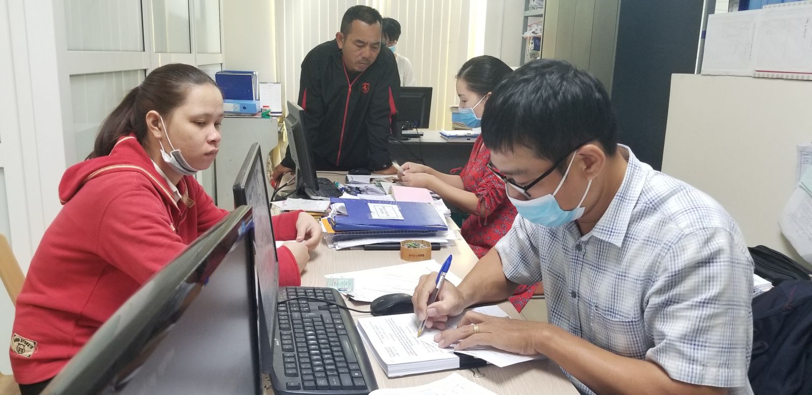 Cán bộ Trung tâm Phát triển quỹ đất TP. Huế đang thực hiện việc chi trả tiền bồi thường, hỗ trợ di dời dân cư khu vực I Kinh thành Huế