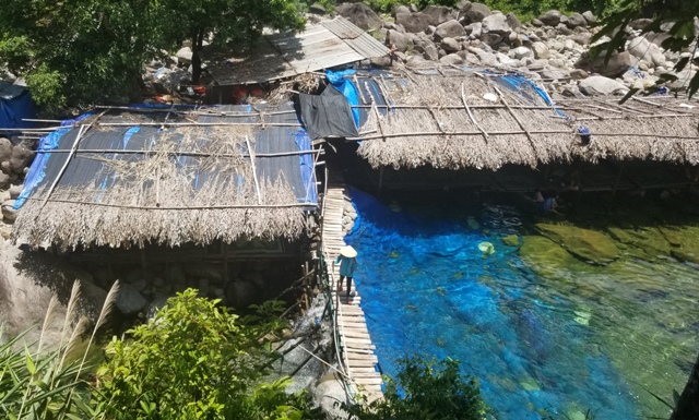 Cơ sở kinh doanh tại suối Voi dùng bạt chắn để giữ nước