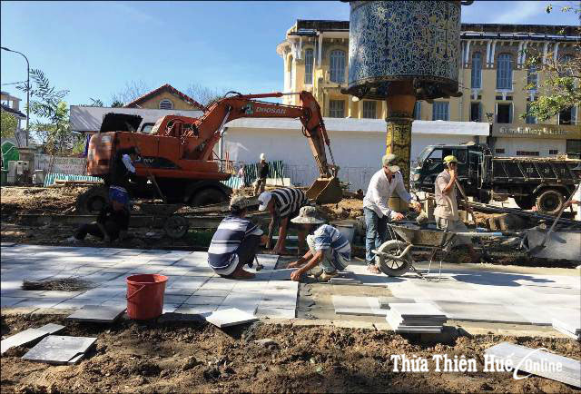 Công viên Tứ Tượng đang được khẩn trương thi công các hạng mục để kịp phục vụ Festival Huế 2018