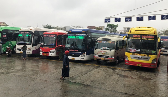 Các phương tiện của HTX Vận tải Ô tô Phú Lộc tham gia chạy tuyến Huế-Tam Kỳ với 3 nốt trong ngày