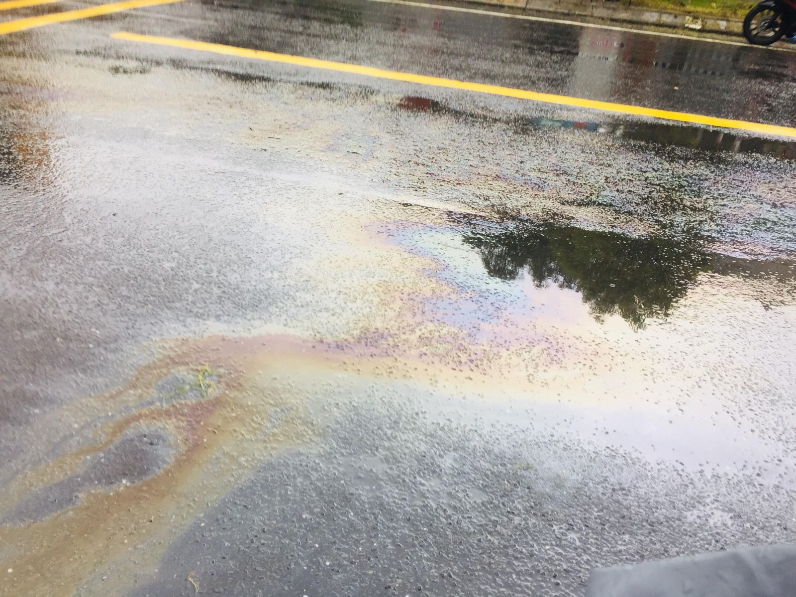 Kiểm tra kỹ các vệt màu này cùng với khảo sát ý kiến của người dân sinh sống hai bên đường Chi cục Quản lý đường bộ 2.6 và nhà thầu thi công nhận định vết dầu loang, nhớt từ bên ngoài rơi vãi xuống đường có thể do phương tiện tham gia giao thông hoặc phương tiện chở nhiên liệu bị rò rỉ; hoặc rơi vãi trước đó khô đọng trên mặt đường nên khi gặp mưa tạo váng loang trên mặt đường.