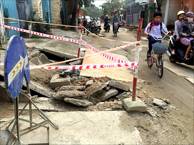 Tấm đan nhà dân trên đường Dương Văn An bị sập do thi công cống thoát nước