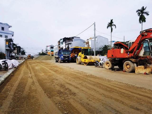 Ông Trần Ngọc Sự, Giám đốc Công ty CP Đầu tư xây dựng và Thương mại Thiên Phát Thịnh (đơn vị thi công) cho biết: DA khởi công từ tháng 10/2020 nhưng thực tế, đến 7 tháng sau (5/2021), nhà thầu mới thực sự có mặt bằng để thi công. Đến nay, nhiều hạng mục vẫn vướng mặt bằng nên chậm tiến độ. Chủ đầu tư đã gia hạn tiến độ đến tháng 3/2022. Tuy nhiên, hiện nay nền, mặt đường đơn vị thi công phấn đấu hoàn thành trước Tết Nguyên đán, riêng các hạng mục vỉa hè không biết lúc nào xong vì hiện vẫn chưa có mặt bằng.