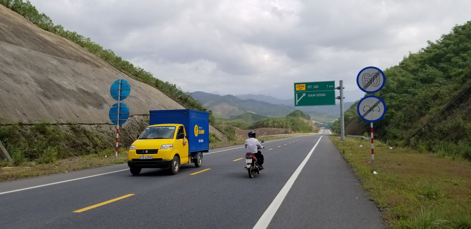 Bảng chỉ dẫn lối ra cao tốc La Sơn - Túy Loan xuống Tỉnh lộ 14B qua địa bàn huyện Nam Đông