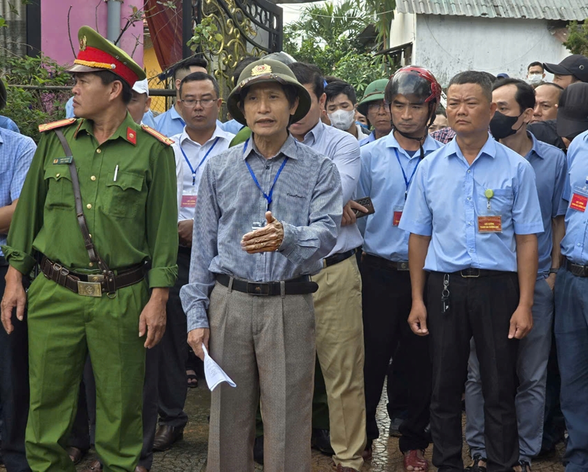 | Phó Chủ tịch UBND TP. Huế, Trưởng ban thực hiện cưỡng chế TP. Huế Nguyễn Việt Bằng (giữa) giải đáp các thắc mắc của các hộ dân tại buổi cưỡng chế |