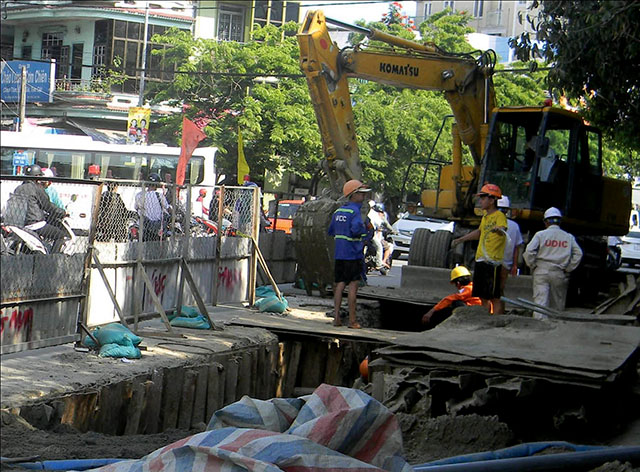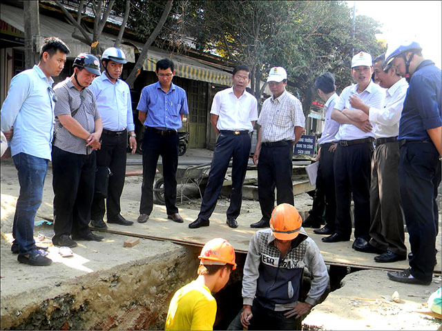 Lý giải nguyên nhân chậm tiến độ, Phó Chỉ huy trưởng nhà thầu UDIC, ông Nguyễn Bình Minh cho rằng, hầu hết các tuyến cống nằm trên đường có mặt cắt ngang hẹp, trong khi địa chất phức tạp, độ sâu chôn ống lớn. Mặt khác, hệ thống tuyến ống chồng chéo với các hệ thống hạ tầng kỹ thuật như đường cáp quang, điện lực, cấp nước nên khó tổ chức thi công đồng loạt.