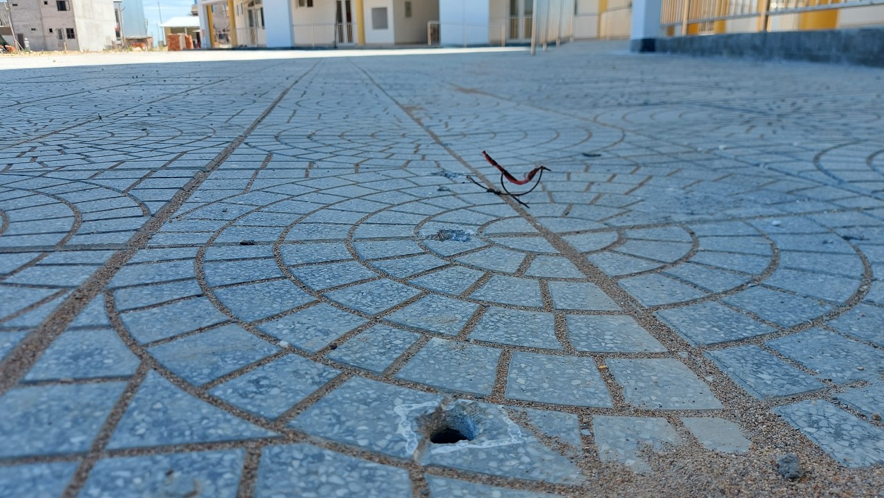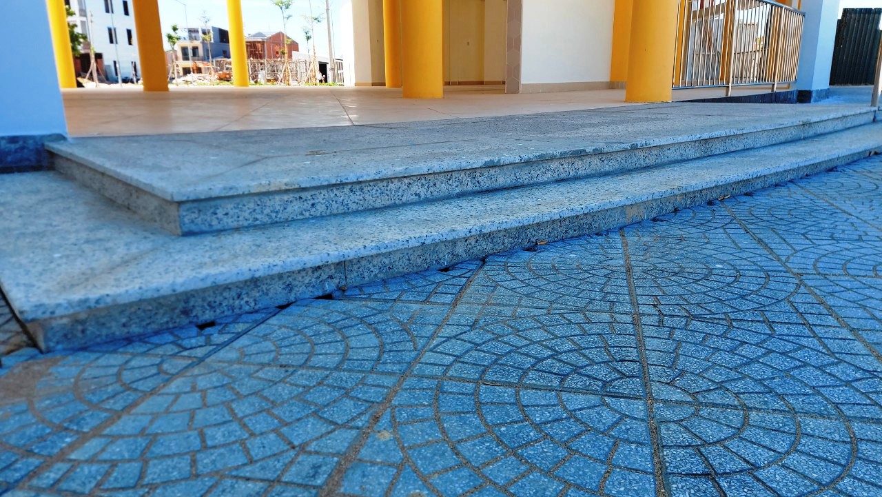 Khu vực bậc tam cấp của Trường mầm non Hương Sơ giai đoạn 1 lún rõ nét, một phần bậc tam cấp biến mất