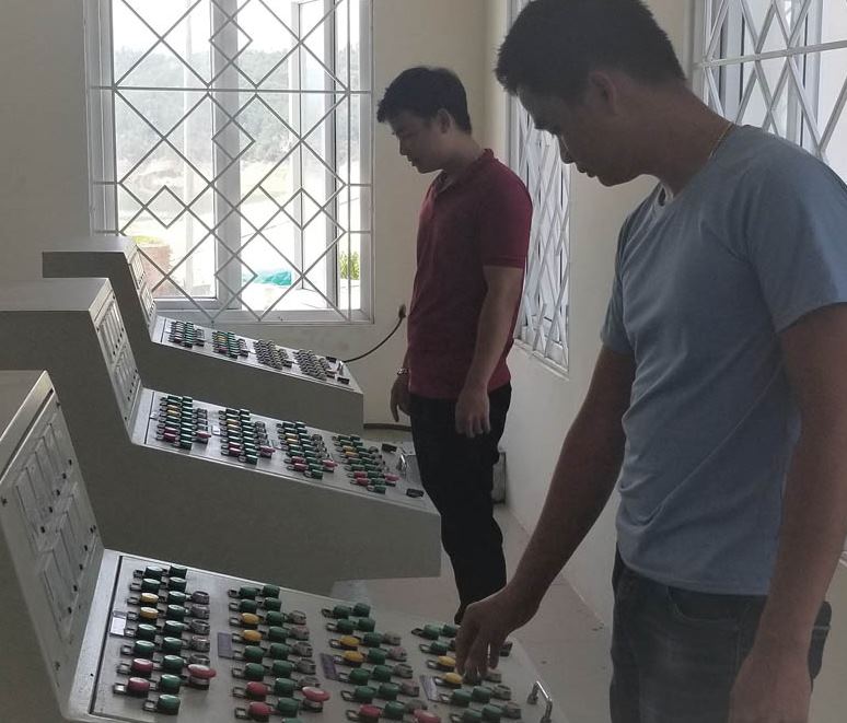 Nhân viên kỹ thuật hồ Tả Trạch vận hành thiết bị