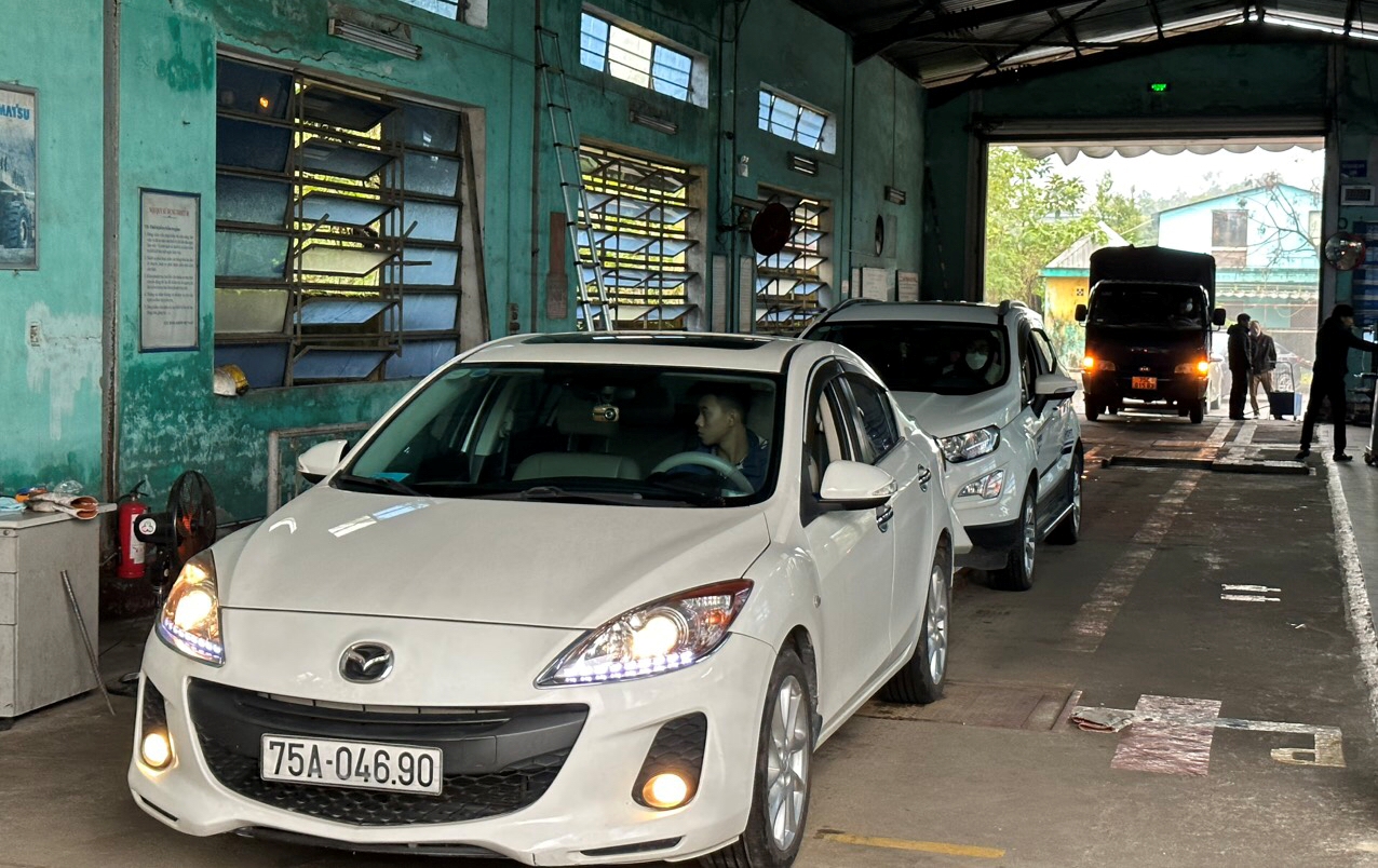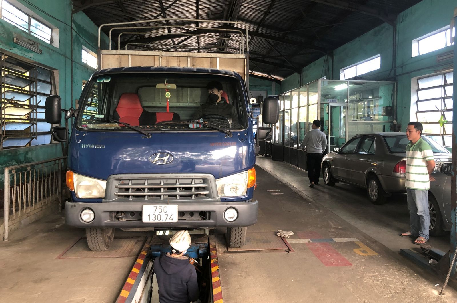 Tại cơ sở 332 Điện Biên Phủ, TP. Huế ghi nhận sáng mùng 9 tháng Giêng (tức ngày 30/1/2023), khu vực sân đỗ phương tiện chờ để vào kiểm định khá thông thoáng. Tại phòng chờ, chủ xe, tài xế thưa thớt đợi đến lượt làm các thủ tục theo quy định trước khi đưa phương tiện vào kiểm định.