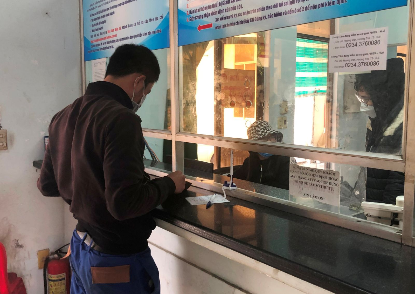 Chủ phương tiện đến giao dịch tại văn phòng Trung tâm Đăng kiểm (332-Điện Biên Phủ, TP. Huế)