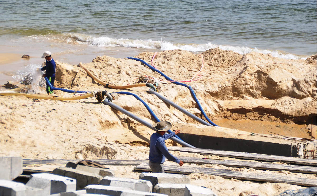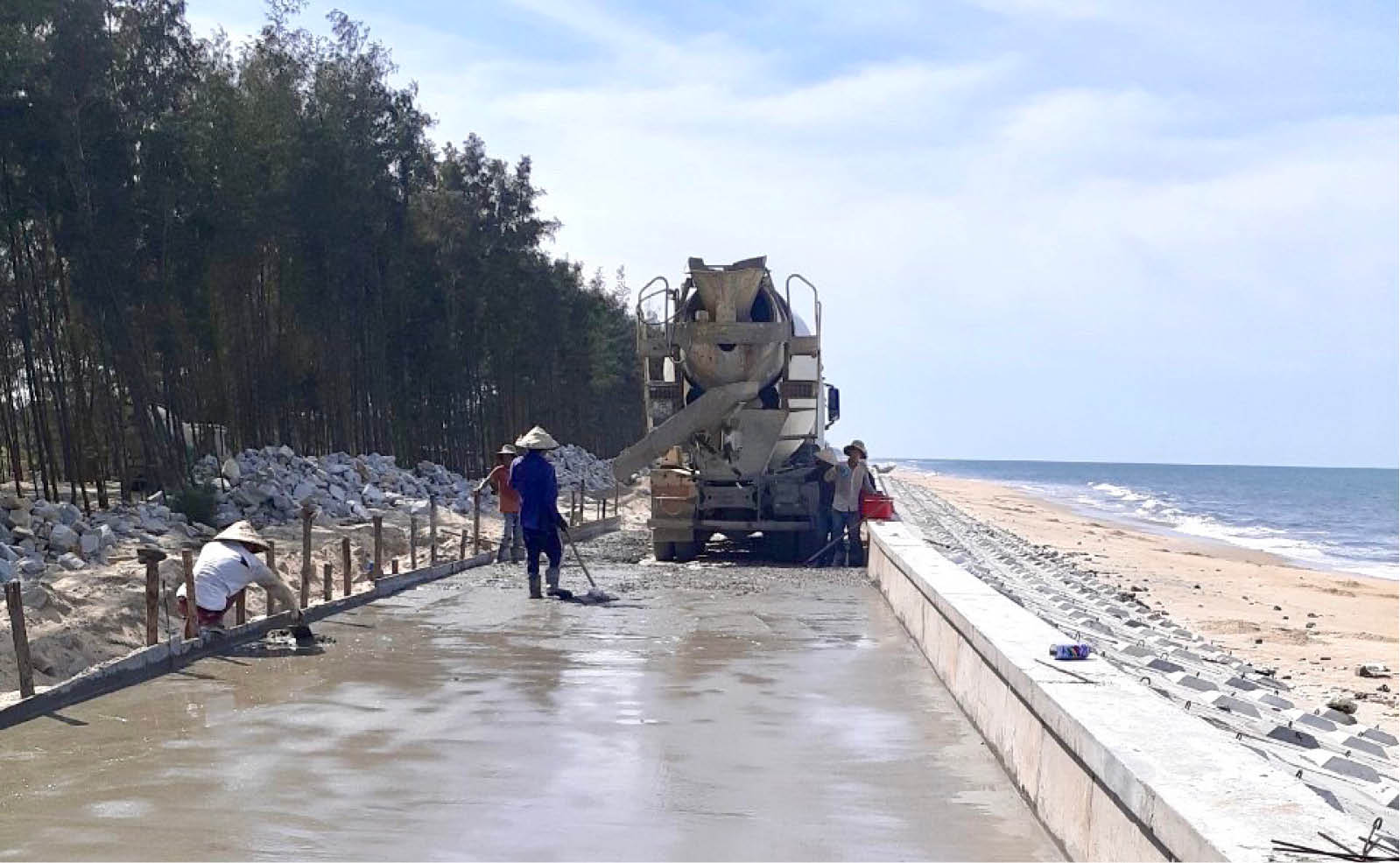 Thi công hệ thống kè biển Vinh Hải (này là Giang Hải)
