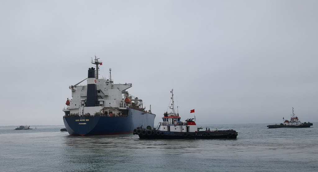 Tàu hàng cỡ lớn ra vào thuận tiện ở cảng biển Chân Mây