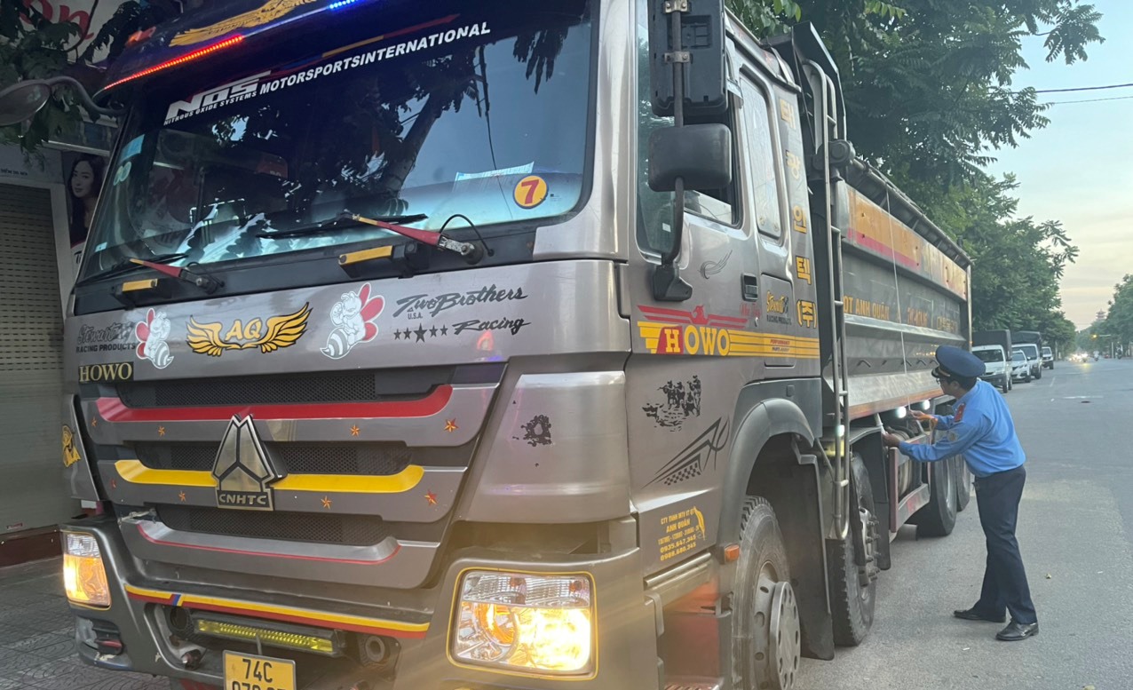 Xe tải mang BKS 74C-07895 thuộc Công ty TNHH MTV TQT Anh Quân, do Lê Phước Chung điều khiển vượt quá tải trọng cho phép 100% đến 150% (121,73%). Xe này cũng chở hàng vượt quá tải trọng cho phép của cầu đường trên 50% (65,73%). Ngoài ra người điều khiển xe không mang theo giấy phép lái xe. Đội Thanh tra lưu động đã thu giữ các giấy tờ liên quan và lập biên bản đề xuất xử phạt theo quy định.