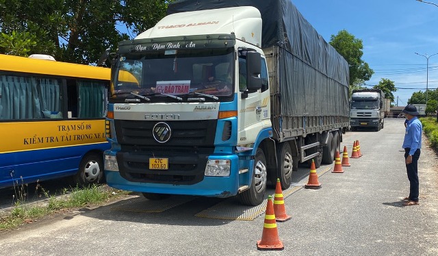 Thanh tra giao thông phối hợp kiểm soát trọng tải phương tiện chở hàng Tết vượt quy định