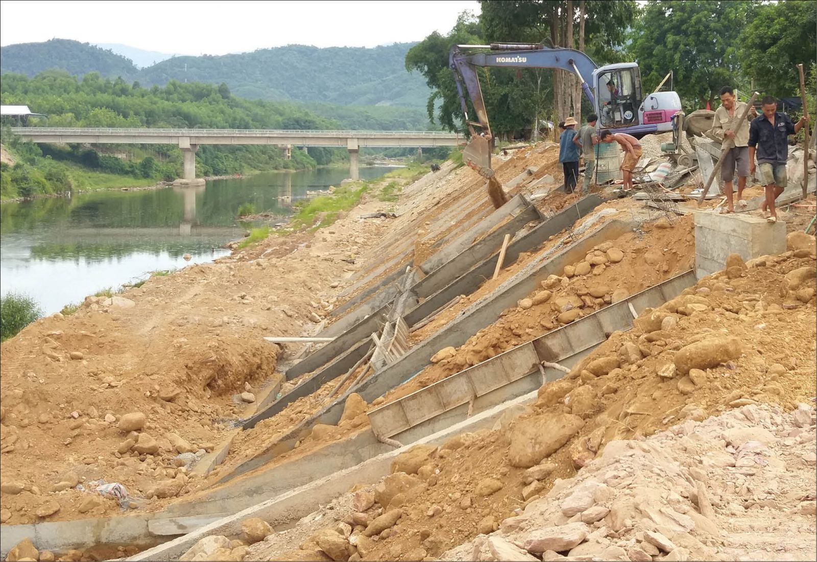 Thi công công trình kè chống sạt lở sông Tả Trạch, xã Hương Giang (Nam Đông)