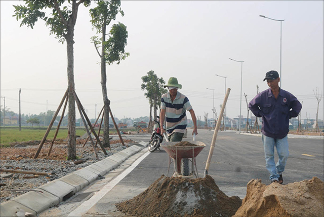 Hoàn thiện vỉa hè khu dân cư mới Bắc Hương Sơ phục vụ di dời, giải phóng mặt bằng khu vực Thượng Thành. Ảnh: ĐỒNG VĂN