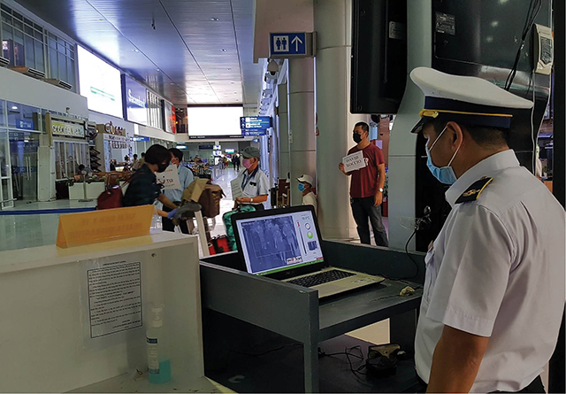 Cảng Hàng không Quốc tế Phú Bài phối hợp đo thân nhiệt hành khách ra vào