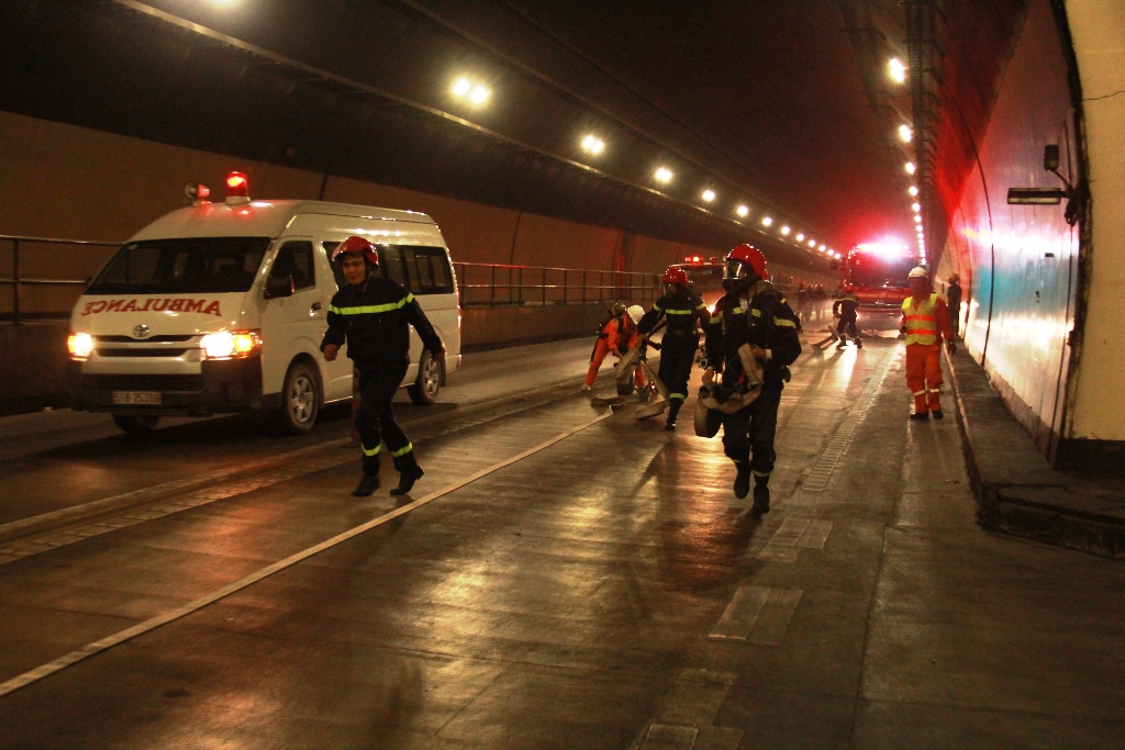 Đại diện Hamadeco cho biết, việc diễn tập phương án 3D là để các đơn vị thành thục, nâng cao tính chủ động trong ứng phó sự cố cháy ở hầm. Do hiện nay lối thoát hiểm đang được thi công mở rộng, nên việc diễn tập là rất cần thiết để các đơn vị cùng có phương án phối hợp, ứng phó thoát hiểm trong mọi tình huống.