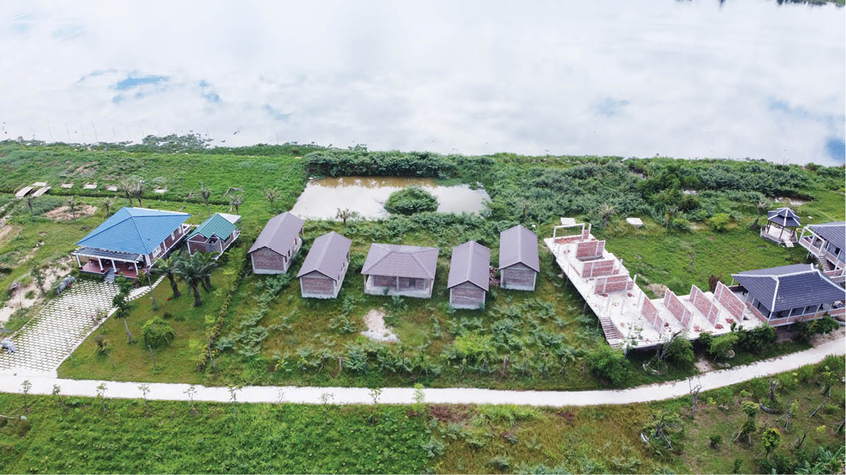 Ghi nhận của PV, từ tuyến đường dẫn vào Cồn Nhỏ khu vực của DA luôn cửa đóng then cài. Hiện trạng trong DA đã trồng nhiều cây xanh mọc um tùm, đường giao thông nội bộ, thảm cỏ đã hoàn thiện. Nhiều công trình nhà cửa, lợp ngói đã được xây dựng hoàn thiện và còn dang dở nằm cạnh các trục đường nội bộ…