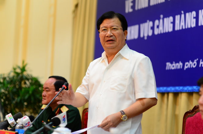 Phó thủ tướng Trịnh Đình Dũng phát biểu trong buổi làm việc với TP.HCM về tình hình triển khai các dự án phát triển giao thông đô thị tại khu vực cảng hàng không quốc tế Tân Sơn Nhất và cảng Cát Lái sáng 11-8