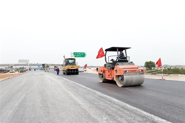 | Các đơn vị thi công nút giao Đông Xuân, giao Quốc lộ 45 với Quốc lộ 47 đi thành phố Thanh Hoá, ngày 28/1/2023. Ảnh: Dương Giang/TTXVN |