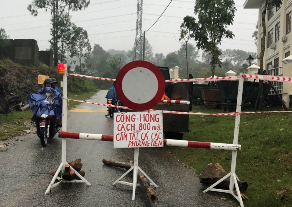 Cống Nghĩa Trang, đường Tam Thai, TP. Huế bị hỏng do mưa lũ, ngành chức năng đã lập rào chắn cảnh báo để đảm bảo an toàn giao thông