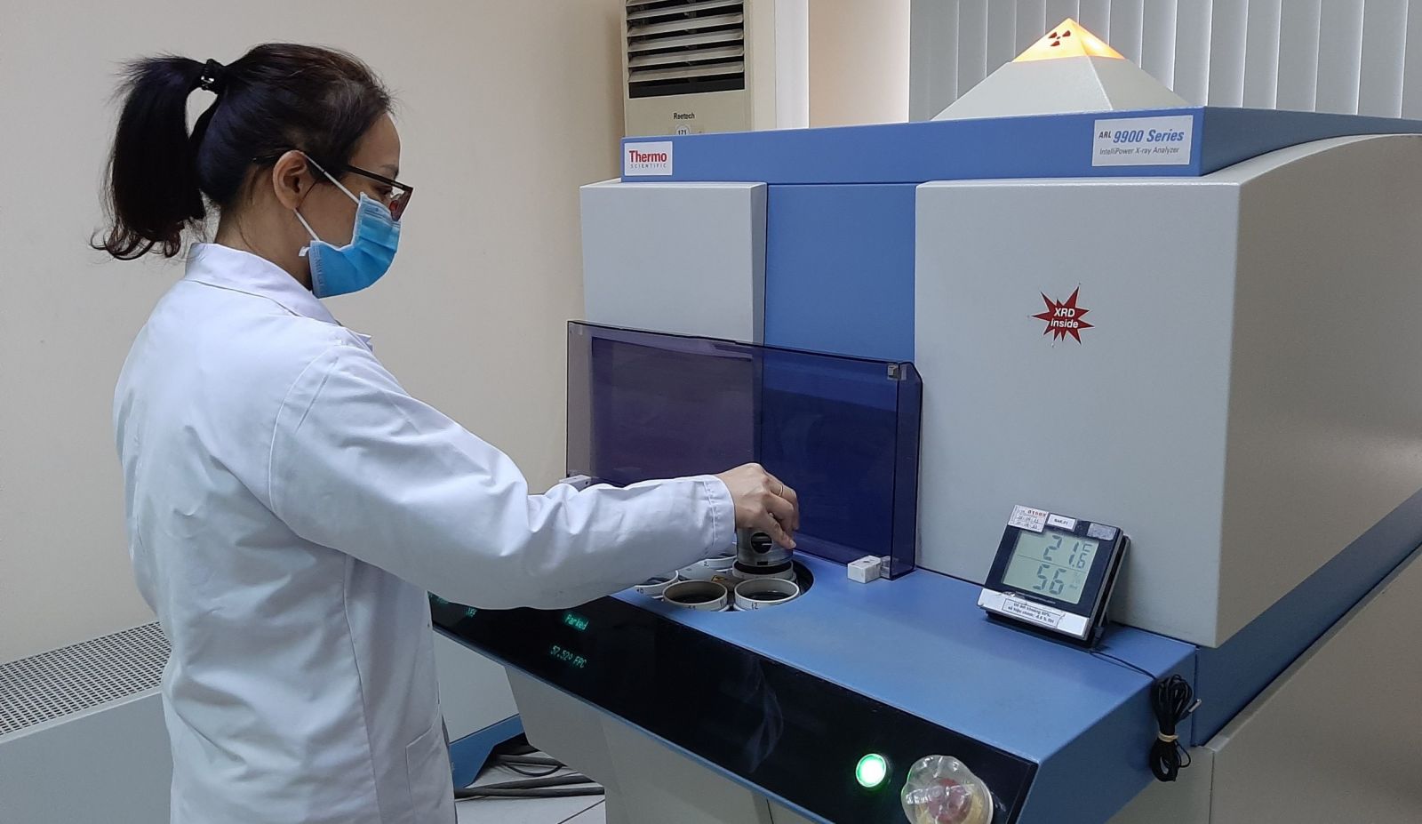 Nhân viên Phòng Thí nghiệm - Kiểm tra chất lượng đang thực hiện phân tích mẫu trên máy X-rays tại Đồng Lâm