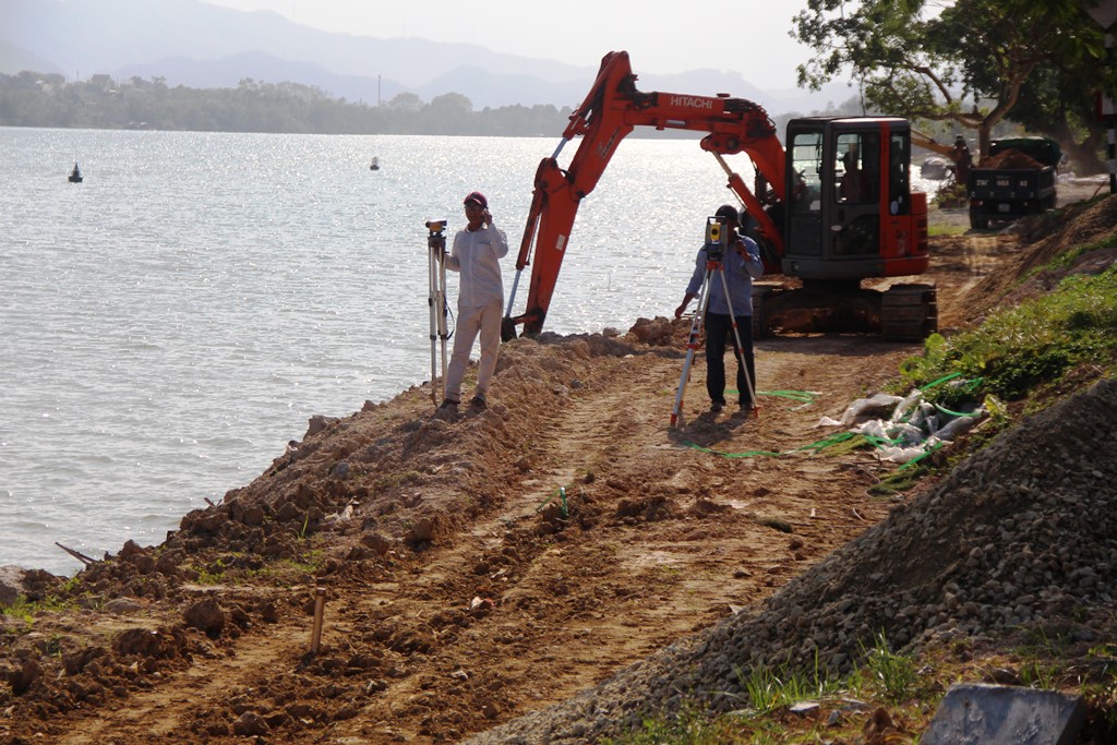Ở nhiều đoạn tiếp giáp mặt sông, công tác san ủi được tính toán kĩ lưỡng để đảm bảo an toàn cũng như tính kiên cố cho công trình