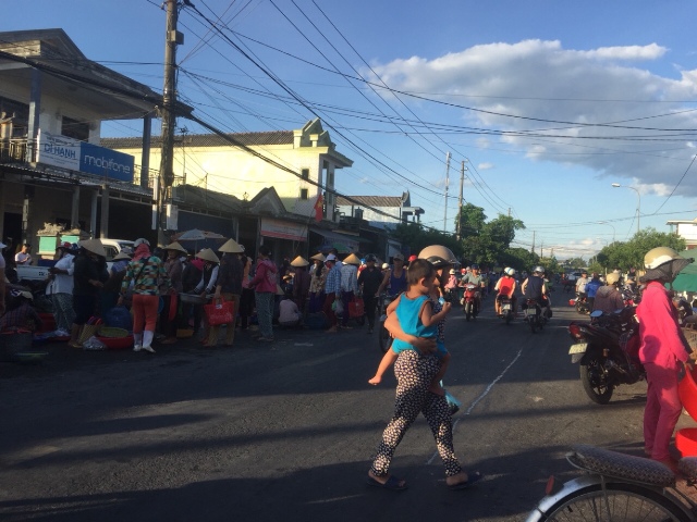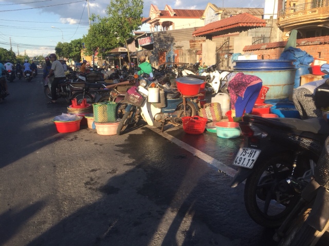 Các hộ dân buôn bán còn để các phương tiện xe máy ngổn ngang bên vệ đường trên chiều dài khoảng 200m. Do họp chợ từ lúc tờ mờ sáng nên khi các phương tiện đi qua đây để tránh va quẹt đều phải dừng lại, “dò đường” để qua, gây tắc nghẽn giao thông. Từ hai bên đường, các hộ buôn bán cùng người mua cũng qua về trên quốc lộ gây nguy cơ tai nạn giao thông.