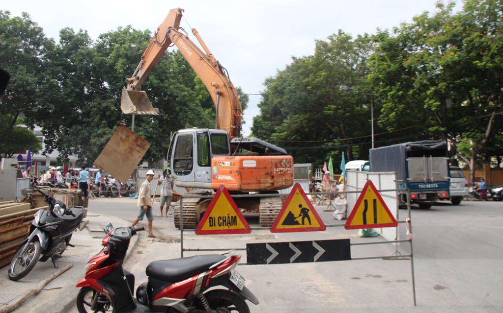 Theo phản ánh của người dân cũng như giới tài xế, sáng 26/7 hàng trăm phương tiện qua lại khu vực nói trên gặp rất nhiều khó khăn bởi một gói thầu liên quan đến Dự án cải thiện môi trường nước TP. Huế đang thi công. Ghi nhận của Thừa Thiên Huế Online cho thấy, nhiều xe nhích từng chút một đi qua đoạn đường đang thi công, cạnh đó là máy cẩu đang tiến hành thi công, hàng rào lấn hết 2/3 mặt đường.