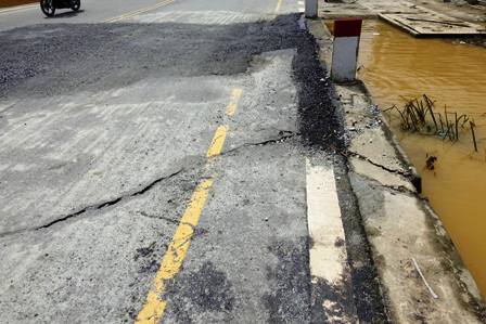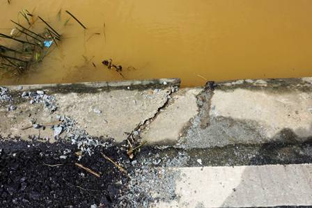 Người dân cũng phản ánh phần kè bê tông ở lề đường bị nứt nhiều điểm. Ảnh: CTV
