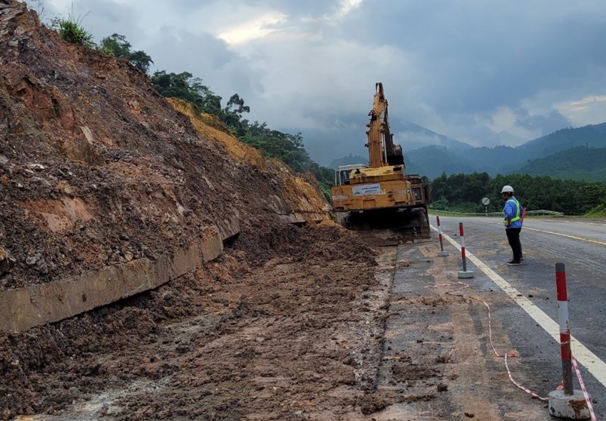 Trước đó, đợt mưa lớn kéo dài đã khiến tuyến cao tốc La Sơn – Túy Loan xuất hiện điểm sạt lở tại Km46+300 vào rạng sáng 31/10. Cụ thể, mái taluy bị sạt lở, đất đá tràn xuống làm đổ tường chắn, kéo dài khoảng 70m.