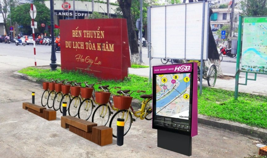 Thí điểm giai đoạn 1 được triển khai tại tại 7 vị trí, bao gồm Eo bầu Nam Xương, Eo bầu Nam Thắng, công viên Nguyễn Văn Trỗi (đường Đoàn Thị Điểm), bến thuyền Tòa Khâm, công viên Nghinh Lương Đình, bãi xe Bảo tàng Hồ Chí Minh và số 11 Lê Lợi với số lượng xe mỗi trạm từ 10-20 xe.