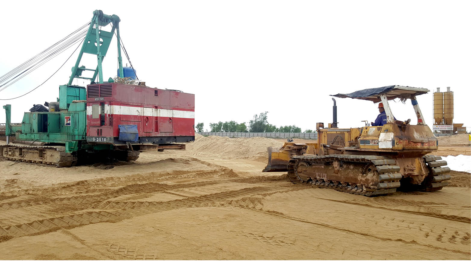 Ông Nguyễn Đức Tùng, Chỉ huy trưởng công trình, thuộc Công ty CP Tập đoàn CIENCO4 cho biết, hiện nay, DA được thực hiện nhiều hạng mục, như giải phóng mặt bằng cũ, san lấp, lu nén, xử lý hệ thống giếng cát để ổn định mặt bằng sân đỗ... Sau đó sẽ tiếp tục bê tông mặt sân bãi, lắp đặt các thiết bị phụ trợ, điện, nước, hàng rào an ninh, hệ thống neo đậu máy bay...