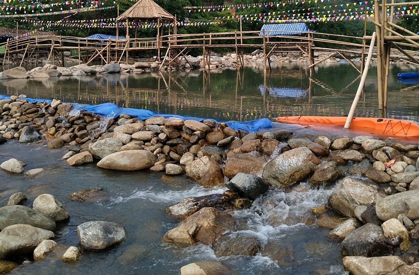UBND xã Trung Sơn đã thành lập đoàn liên ngành đi kiểm tra xử lý vi phạm tại điểm kinh doanh nêu trên. Theo đó, ngày 10/5/2023 đã có quyết định xử phạt hành chính trong lĩnh vực tài nguyên nước và khoáng sản với mức phạt là 3 triệu đồng về hành vi ngăn dòng suối, gây cản trở dòng chảy tại suối A Lin, mà không có giấy phép hợp pháp theo quy định. Đồng thời, áp dụng biện pháp khắc phục hậu quả buộc tháo dỡ bạt và đá chắn suối, các vật gây cản trở dòng chảy.
