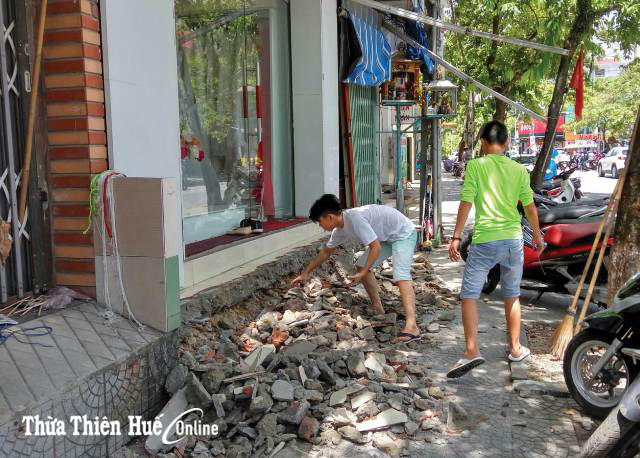 Người dân phường Xuân Phú tự giác tháo dỡ các bậc tam cấp. Ảnh: QP