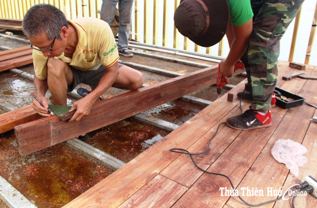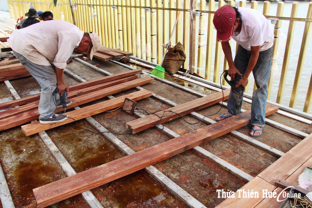 Những hình ảnh về tuyến đường lát bằng gỗ lim dọc sông Hương được Thừa Thiên Huế Online ghi lại:
