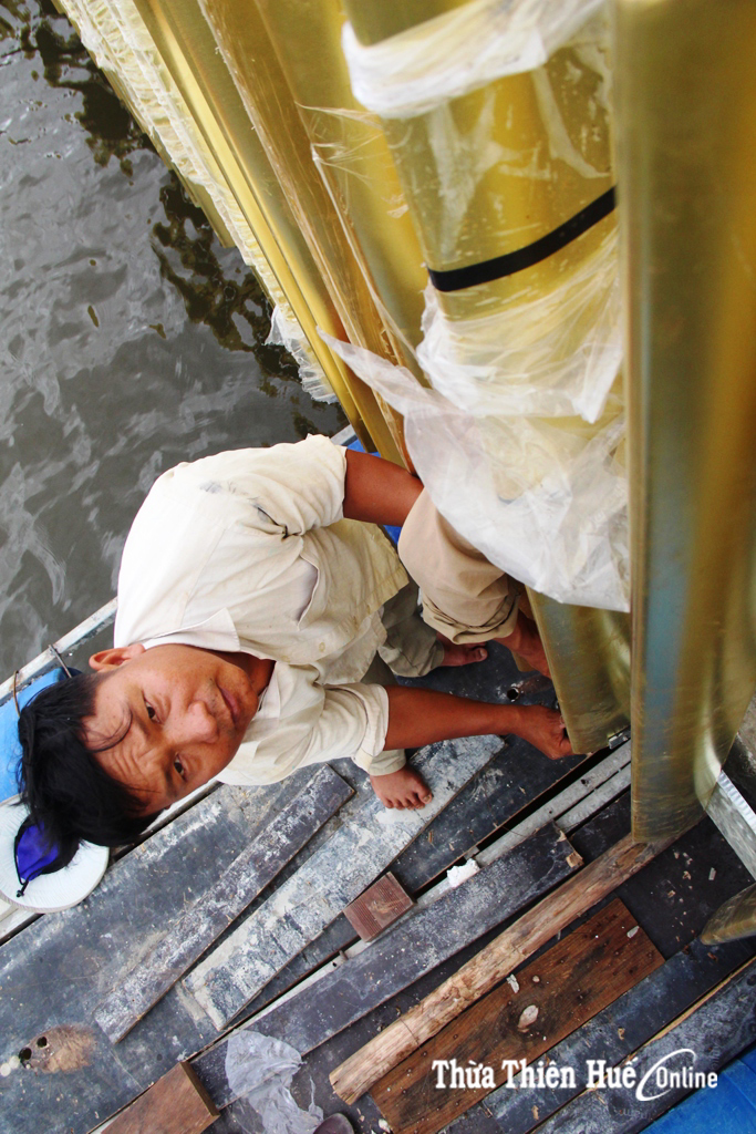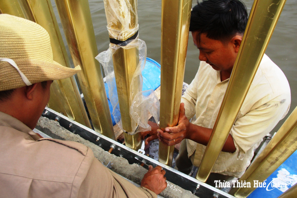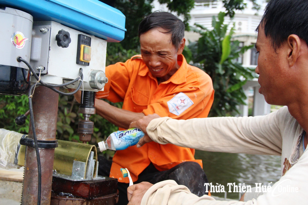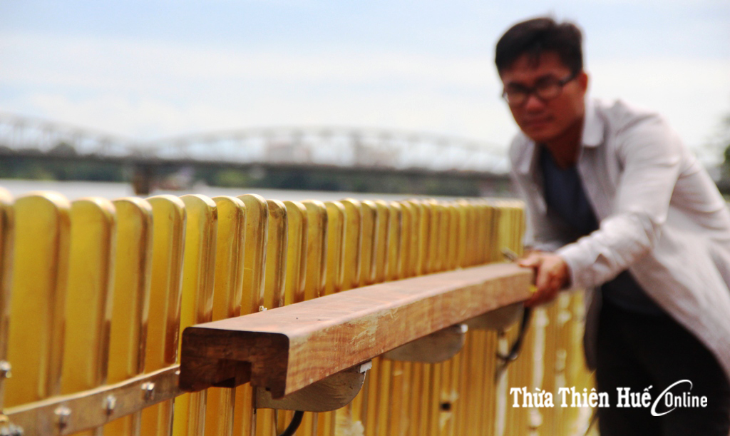 Trong khi đó, lan can hai bên đường đi bộ dọc sông Hương được sử dụng vật liệu bằng đồng. Việc khoan, cắt đồng cũng khá vất vả, phải đúng thông số