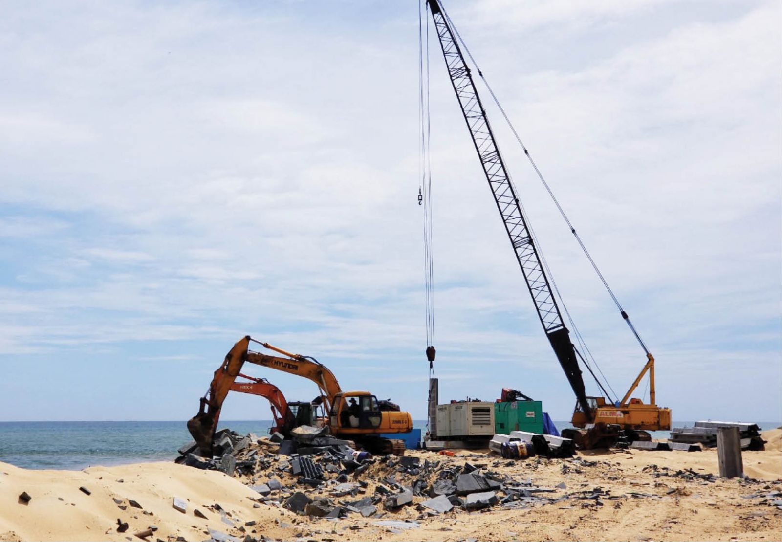 Hạng mục đê chắn cát, giảm sóng thuộc dự án Tư Hiền đang triển khai thi công