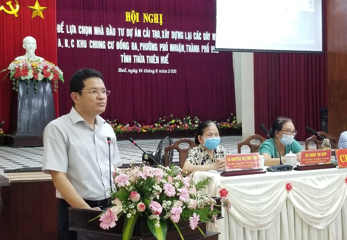 Tại hội nghị, ông Nguyễn Việt Bằng, Phó Chủ tịch UBND TP. Huế cho biết, việc cải tạo, xây dựng mới các dãy nhà A, B, C khu CCĐĐ là nhiệm vụ quan trọng nhằm đảm bảo tính mạng, tài sản và nâng cao chất lượng cuộc sống của người dân. Đây cũng là nội dung nhằm thực hiện công tác chỉnh trang đô thị Huế theo quy hoạch, góp phần xây dựng tỉnh trở thành thành phố trực thuộc Trung ương trong giai đoạn sắp đến.