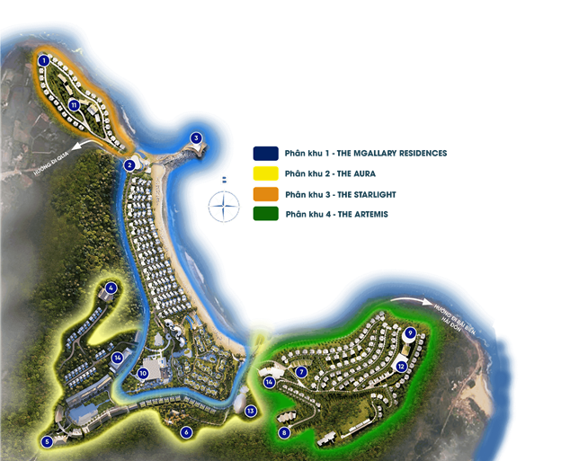 • Quy mô: 52,4 ha được chia làm 4 phân khu: Khu MGallery với hơn 113 biệt thự, Khu Aura với 107 biệt thự và shoptel, Khu Starlight với 30 biệt thự, Khu Artemis với 100 biệt thự.