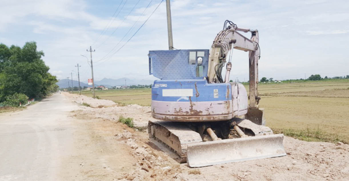 Nhà thầu thi công mở rộng nền đường Hà Công qua khu vực ruộng lúa
